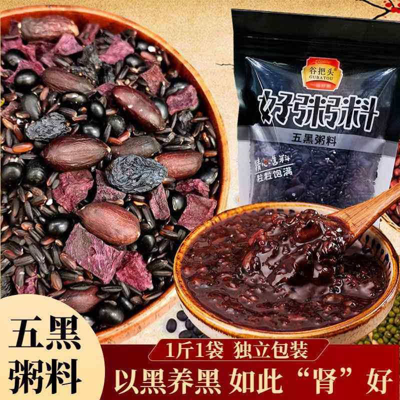 五黑粥五谷杂粮组合八宝粥原料黑米黑豆黑芝麻样生样发粥营养早餐
