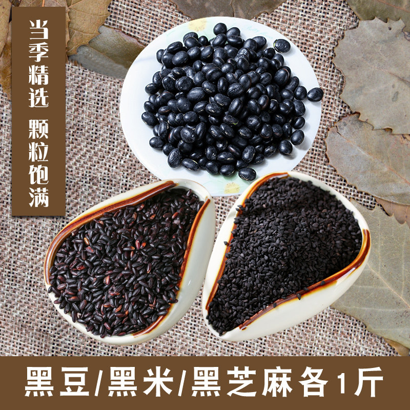 黑米黑豆黑芝麻各1斤每种500g生三黑五谷杂粮熬粥打豆浆1500g备孕