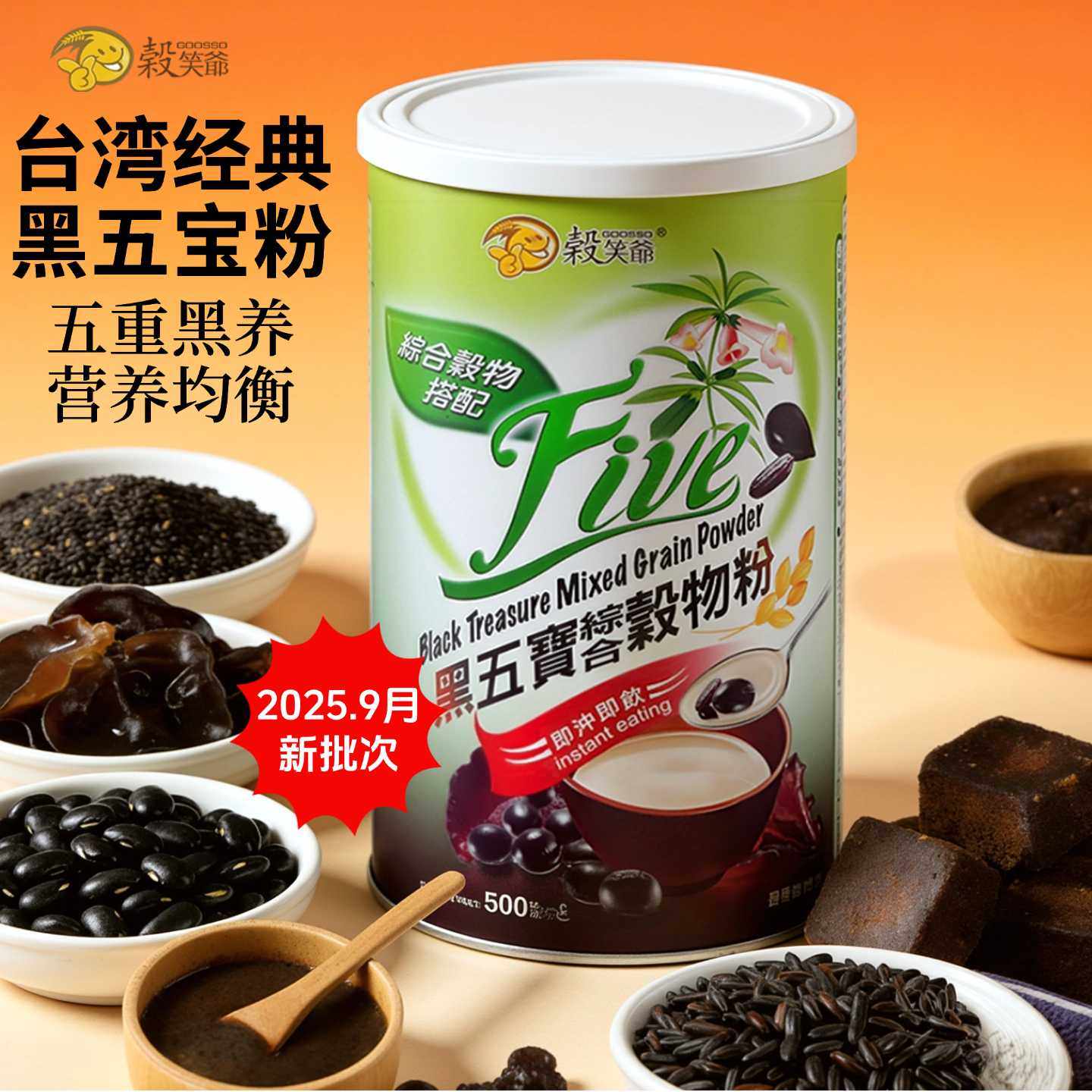 台湾原装谷笑爷黑五宝粉五谷杂粮五黑即食黑米黑豆黑芝麻冲调谷物