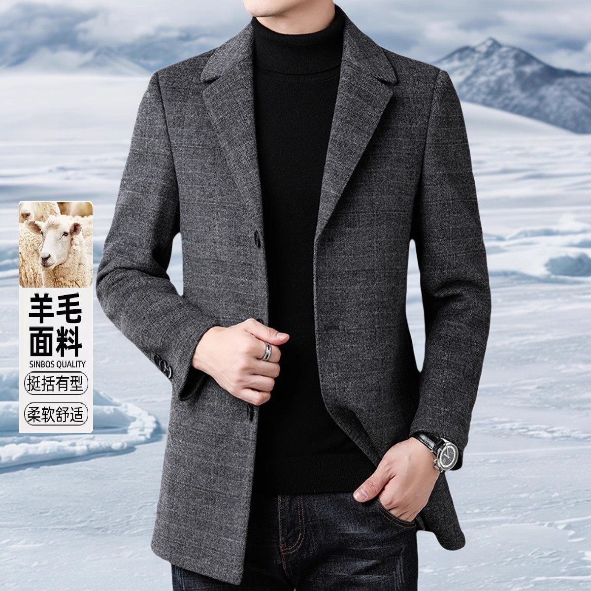 - 呢绒大衣男中长款