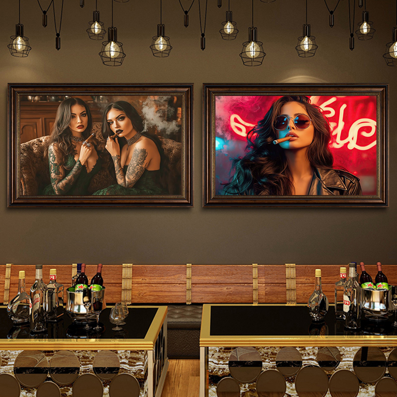 雪茄吧性感美女装饰画美式酒吧烟酒行复古框挂画夜店娱乐会所壁画