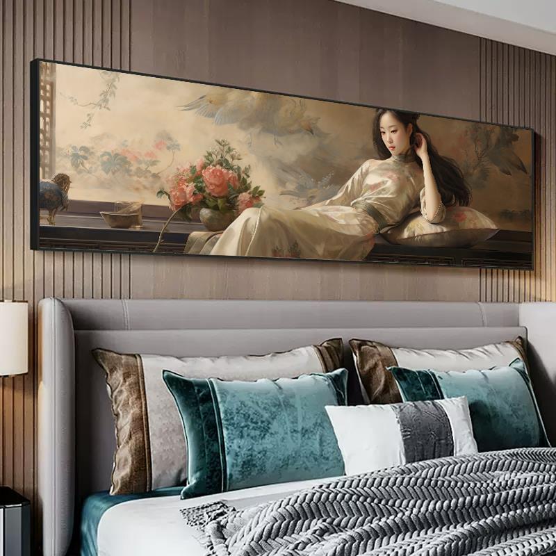 中式卧室装饰画床头挂画艺术美女背景画性感人物酒店宾馆房间壁画