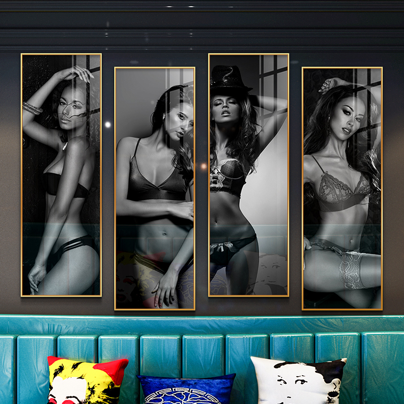 酒吧清吧KTV挂画性感美女装饰画卫生间玄关人物摄影内衣店艺术画