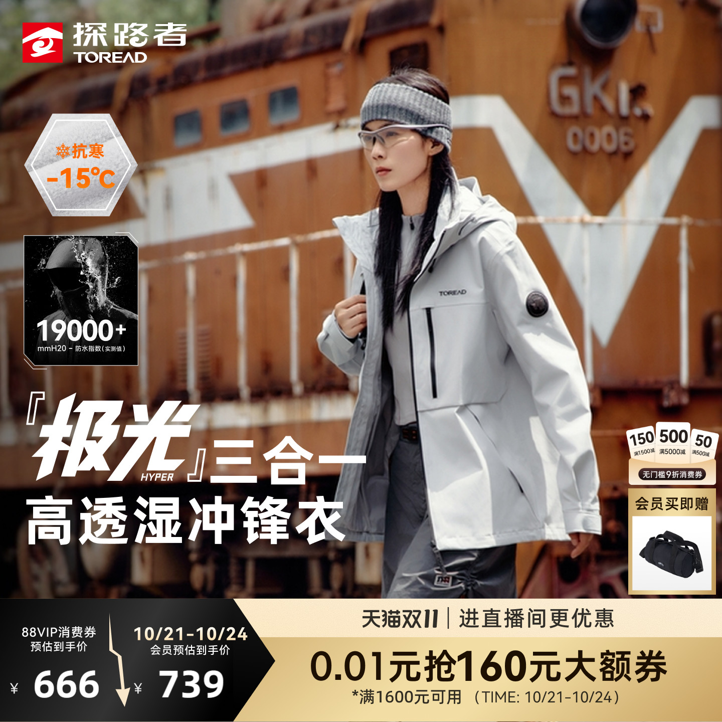 【极光Hyper】探路者冲锋衣男户外登山防水硬壳三合一好看外套女