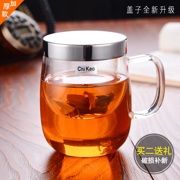 奇高玻璃杯不锈钢过滤茶杯带把办公室泡茶杯带盖男女创意茶杯套装