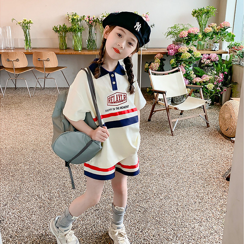 女童夏季套装2025新款休闲POLO衫短袖儿童夏装时尚短裤运动两件套