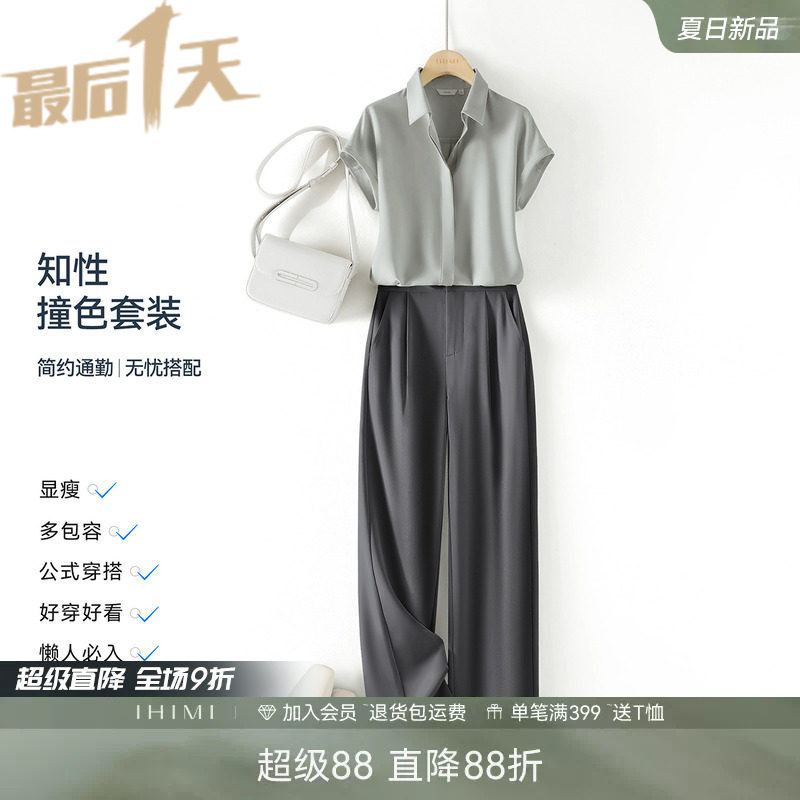 IHIMI海谧轻薄干练衬衫休闲裤两件套女2026夏季高级感时尚套装