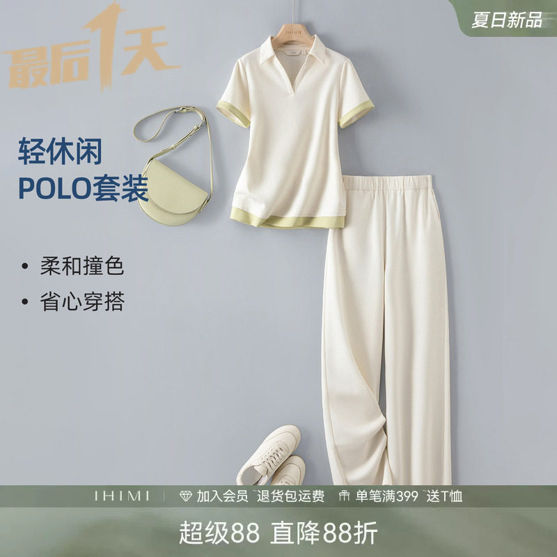 IHIMI海谧松弛感polo衫休闲裤两件套女2026夏季上衣休闲运动套装