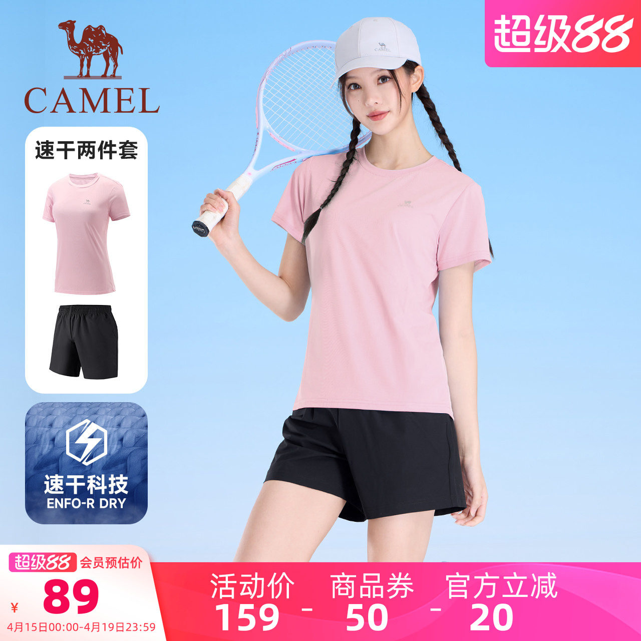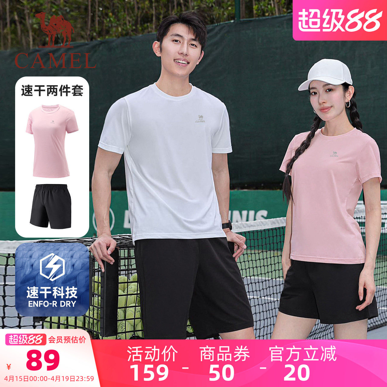 骆驼健身套装男女休闲2026夏季新款速干衣短袖T恤运动短裤两件套