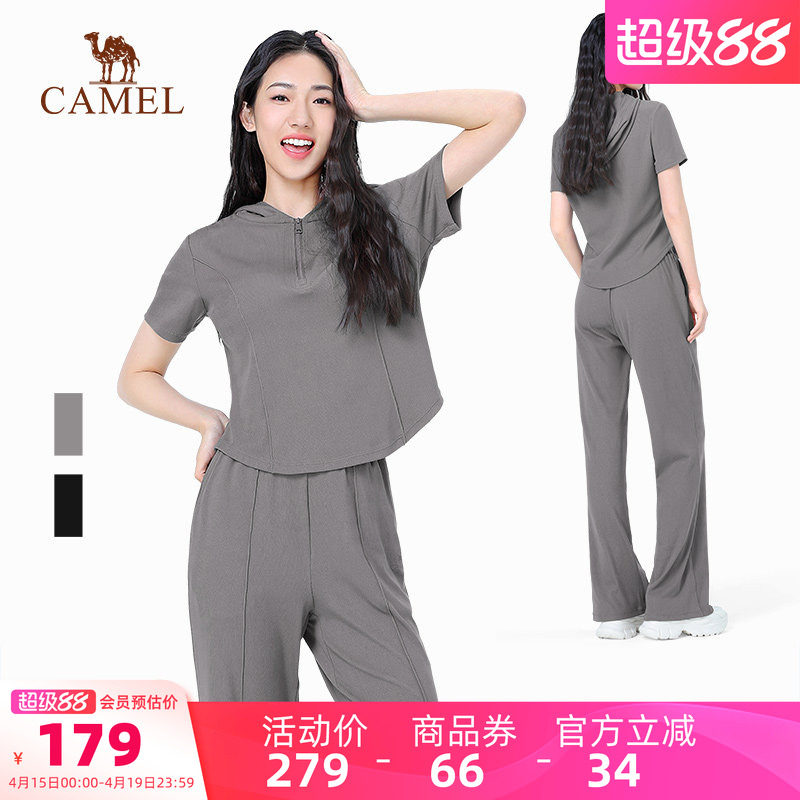 骆驼瑜伽服女士款套装夏季跑步服上衣健身服长袖休闲运动服两件套