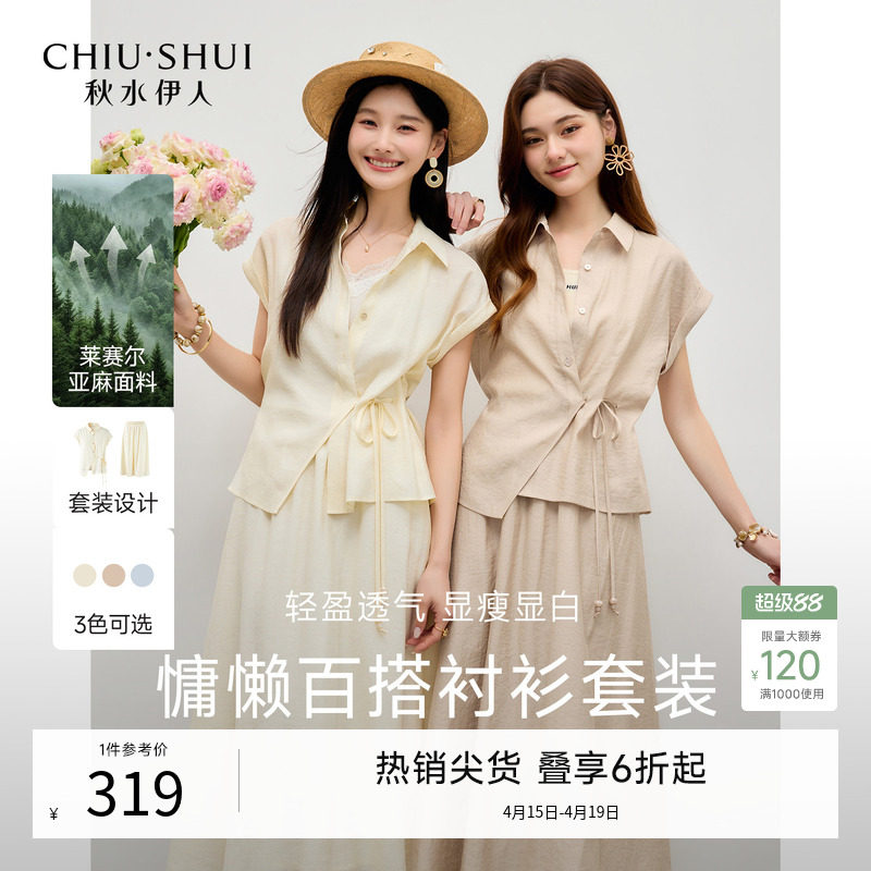 秋水伊人休闲衬衫套装裙2026夏季新款女装宽松莱赛尔亚麻两件套