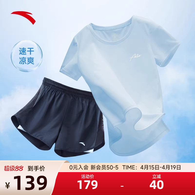 安踏速干运动套装女夏季休闲短袖短裤透气舒适体测中考t恤两件套