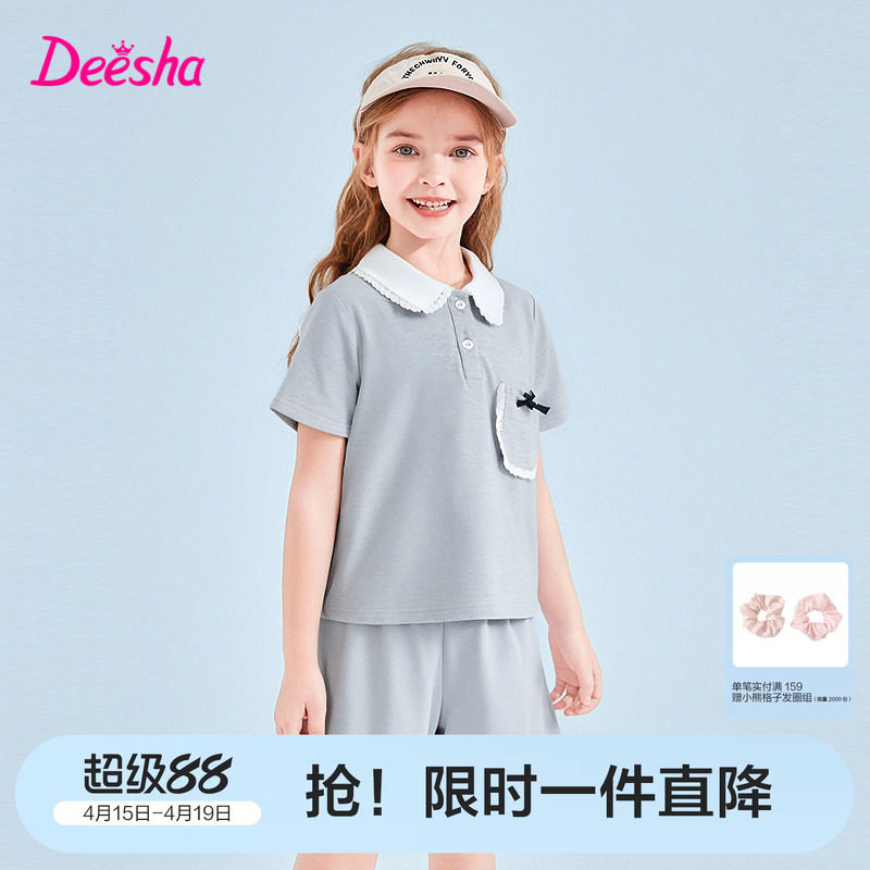 笛莎官方童装女童套装夏季新款大童女儿童洋气休闲短袖短裤两件套