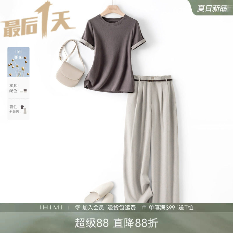 IHIMI海谧亚麻高级感时髦套装女2026夏季新款休闲显瘦上衣两件套