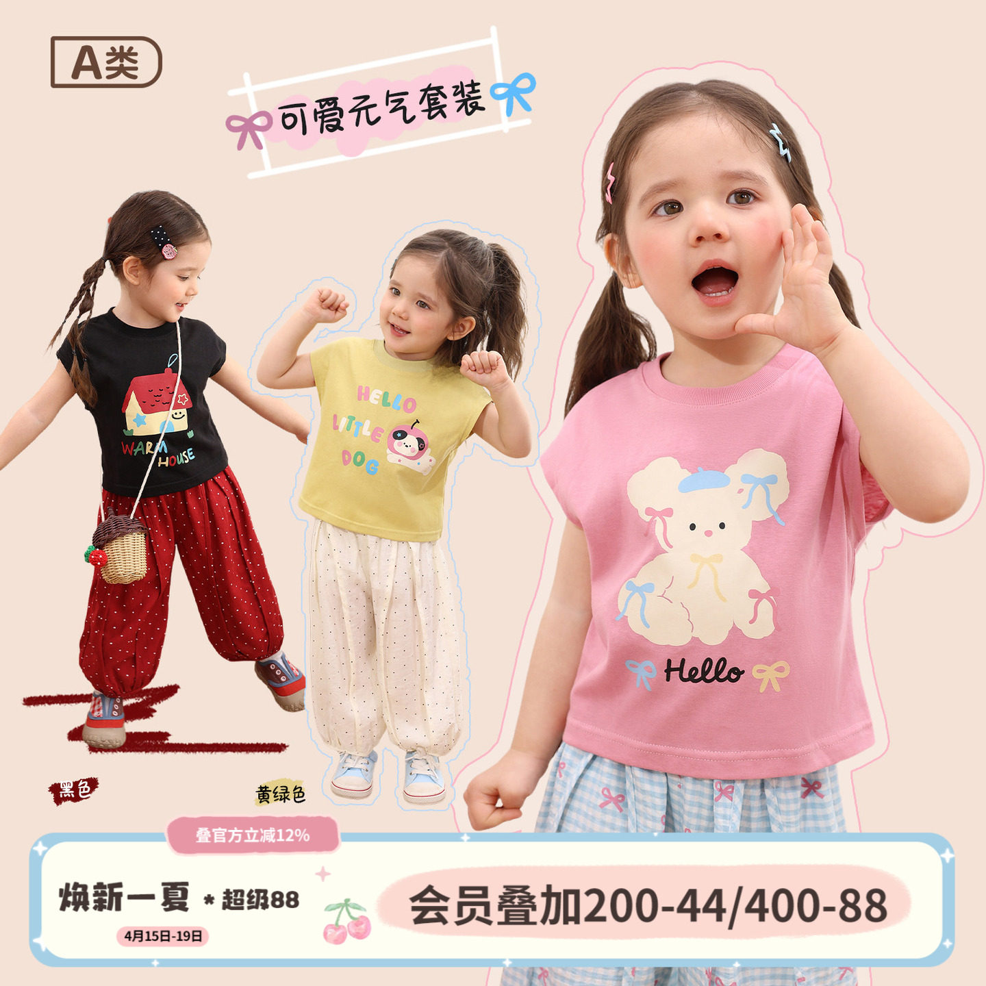 小o爸女婴童 女宝宝套装休闲2026夏季新款婴儿卡通t恤长裤两件套