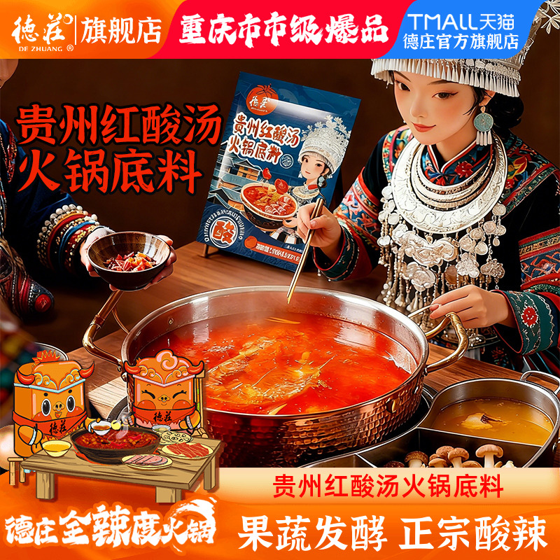 德庄红酸汤火锅底料正宗贵州凯里风味番茄酸汤鱼肥牛肉火锅料调料