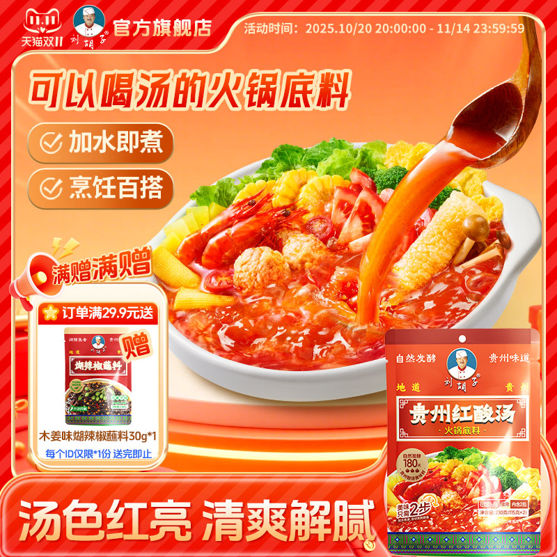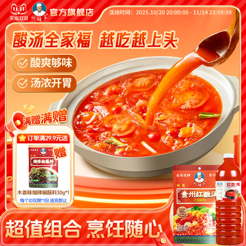 【酸汤双享装】刘胡子贵州红酸汤火锅底料酸汤饭肥牛米线牛肉通用