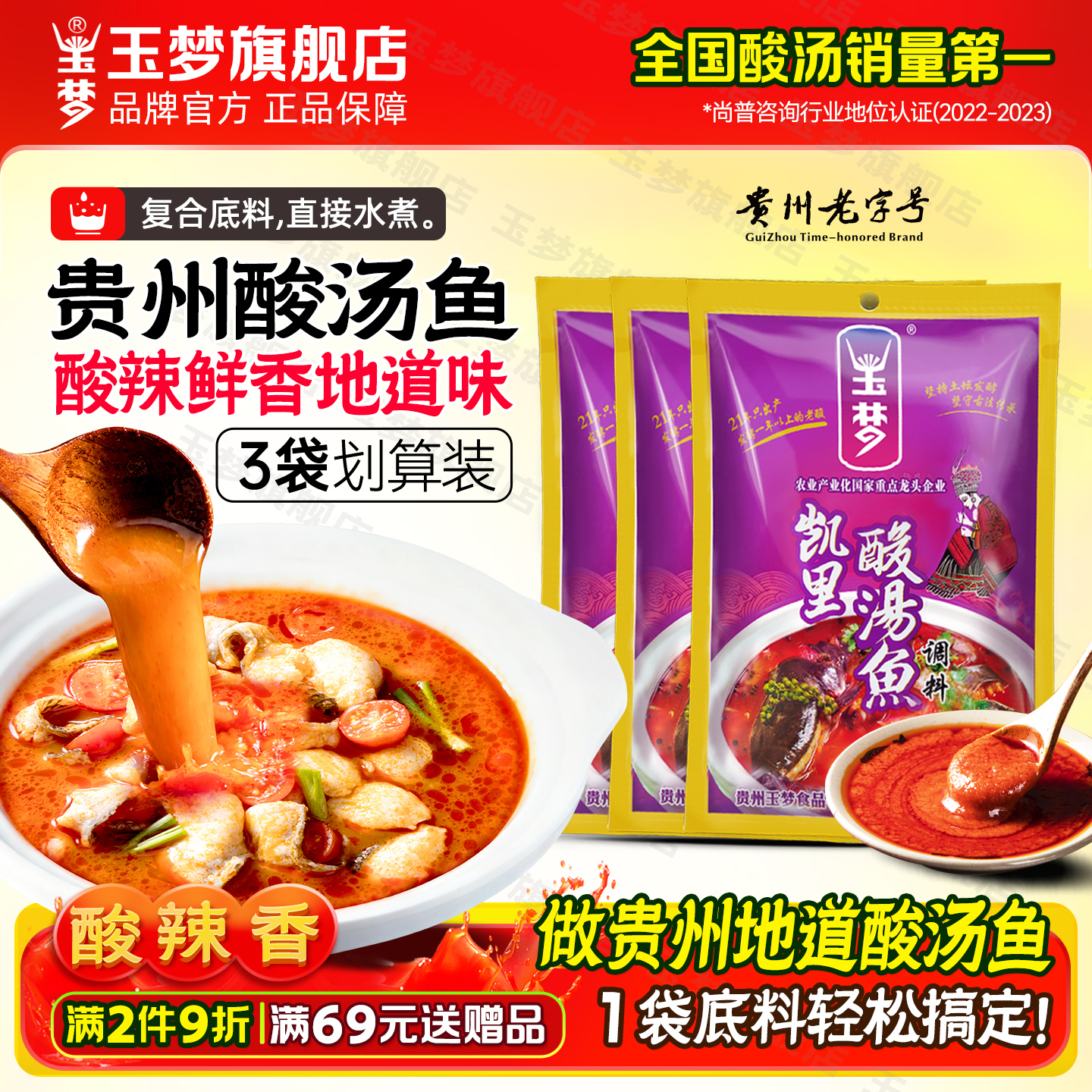 玉梦凯里酸汤鱼调料250g*3袋 贵州特产番茄酸汤火锅底料微辣酸辣