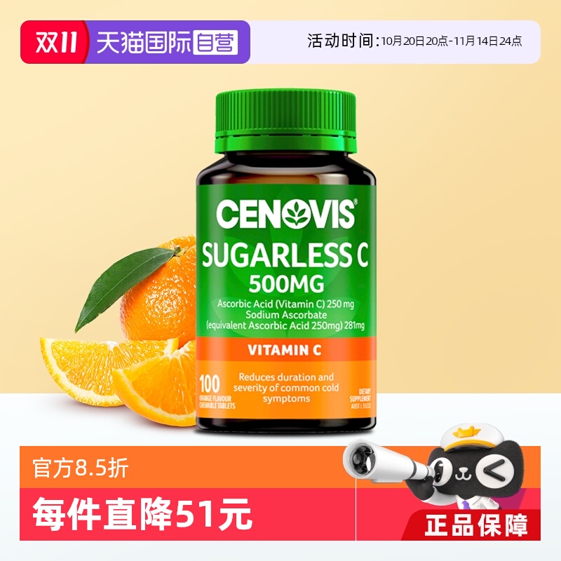 澳洲Cenovis维生素C无糖咀嚼片成人儿童免疫美容白嫩肤高浓VC