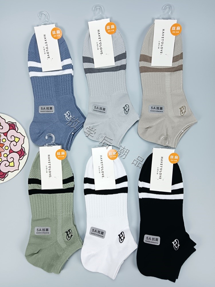 HAVE TO LOVE不得不爱男士丝麻半网眼船袜手工对目无骨缝合抗菌