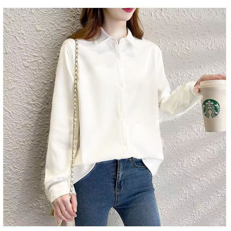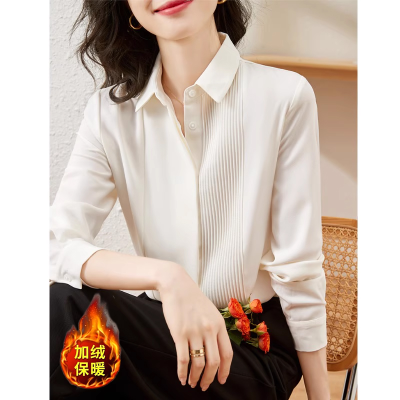 2025年秋冬新款加绒加厚白衬衫女长袖打底衫保暖气质纯色简约衬衣