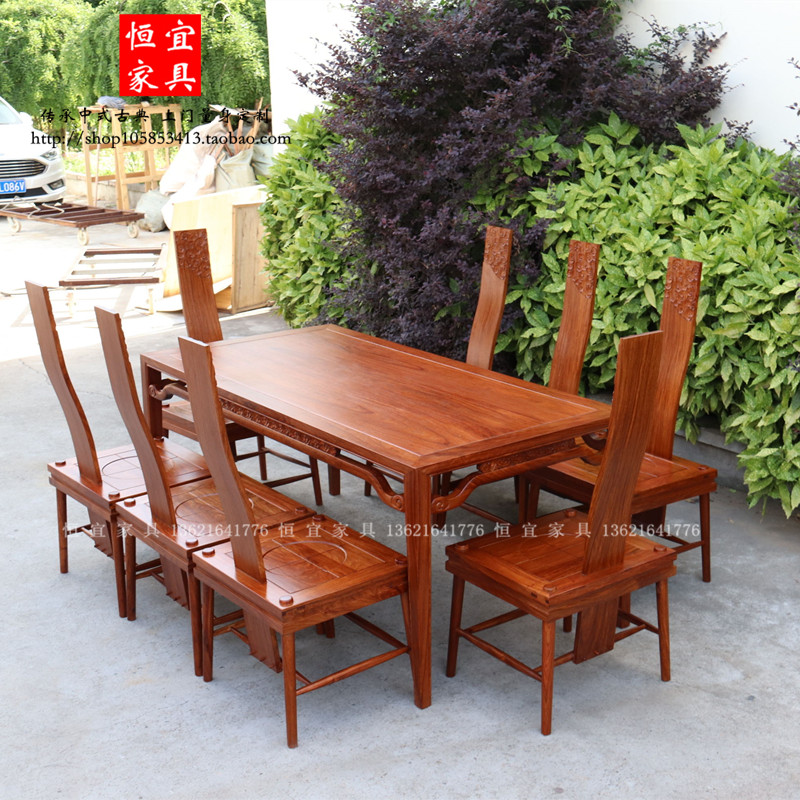 大板直拼实木餐桌椅组合现代小户型简约家用吃饭桌中式长方形桌子