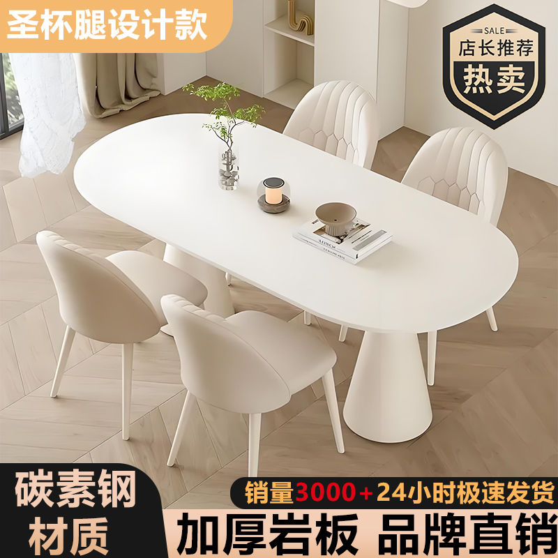 岩板餐桌小户型家用餐桌椅组合轻奢现代简约奶油风吃饭桌子椭圆形