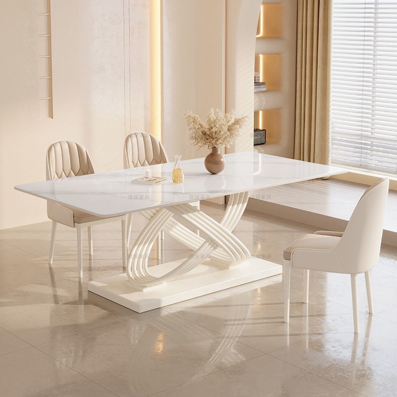 奶油风纯白岩板餐桌椅组合现代小户型意式简约长方形轻奢新款饭桌