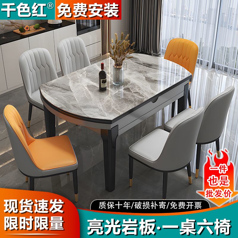 岩板餐桌椅组合可伸缩折叠椭圆形带电磁炉餐桌小户型家用吃饭桌子