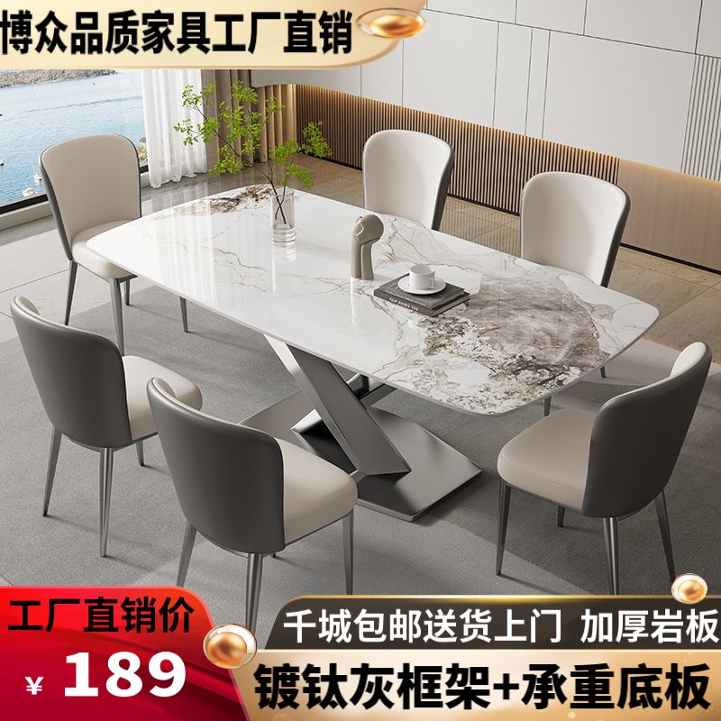 岩板餐桌椅组合意式轻奢饭桌桌子家用现代简约小户型长方形西餐桌
