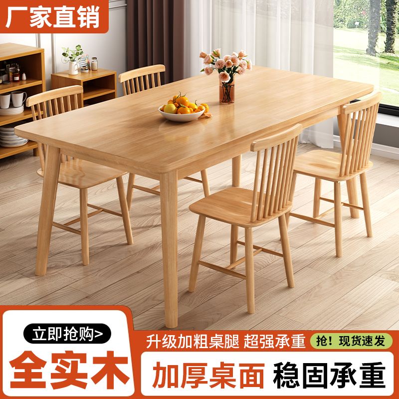 餐桌家用实木餐桌现代简约长方形桌椅组合吃饭桌子家用小户型桌子