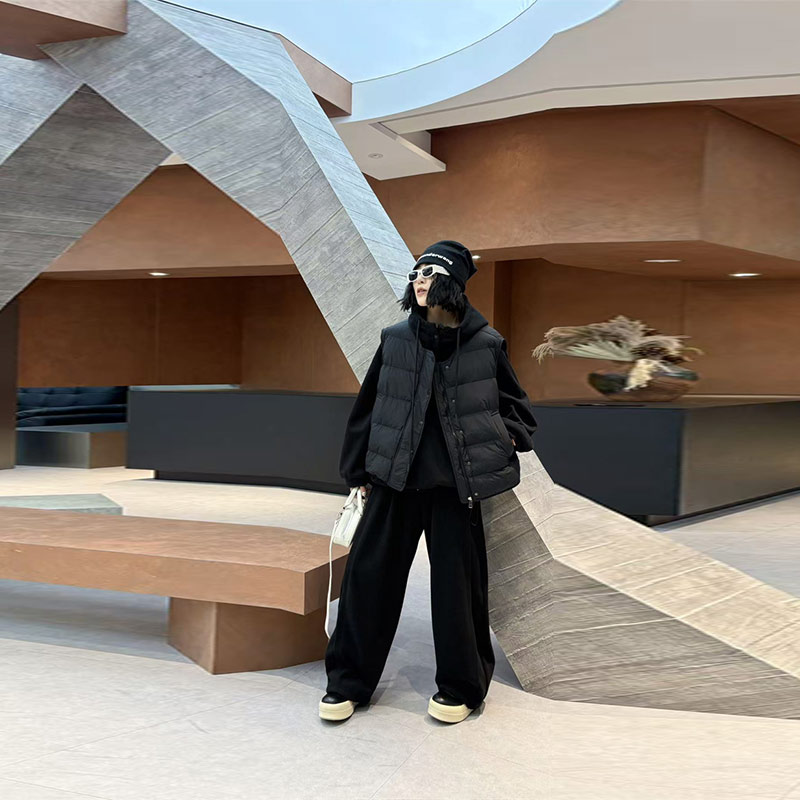 胖妹妹套装连帽长袖卫衣圆领棉马甲加肥大码女装秋冬款休闲两件套
