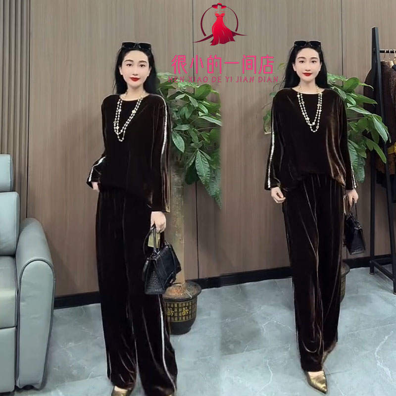 时尚丝绒套装女2025秋冬款高档大码女装宽松百搭上衣阔腿裤两件套