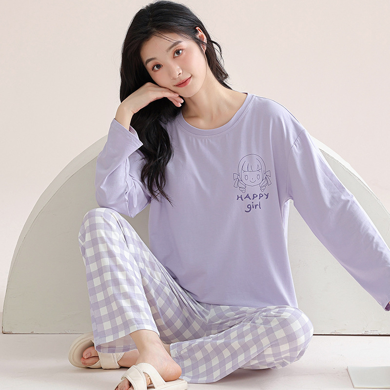 200斤大码女装胖mm纯棉纱布睡衣秋冬款家居服长袖套装可外穿学生
