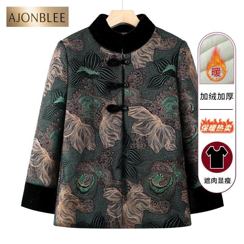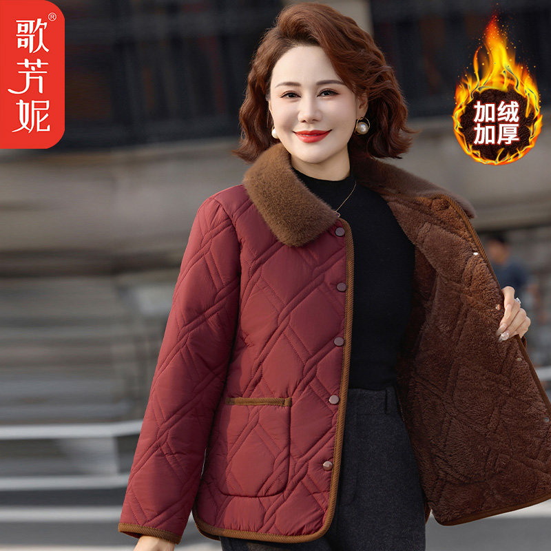 新款中老年女装秋冬加绒保暖小棉衣妈妈装厚棉服外套洋气短款棉袄