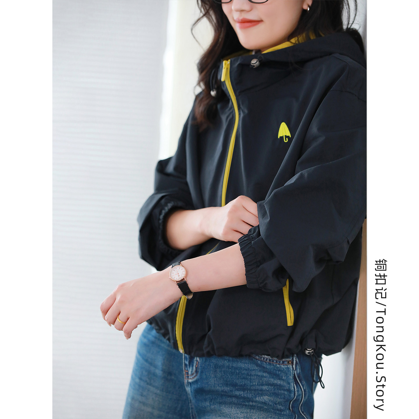 铜扣记连帽外套女休闲百搭宽松显瘦秋季新款韩版撞色长袖风衣夹克