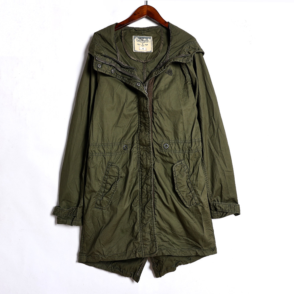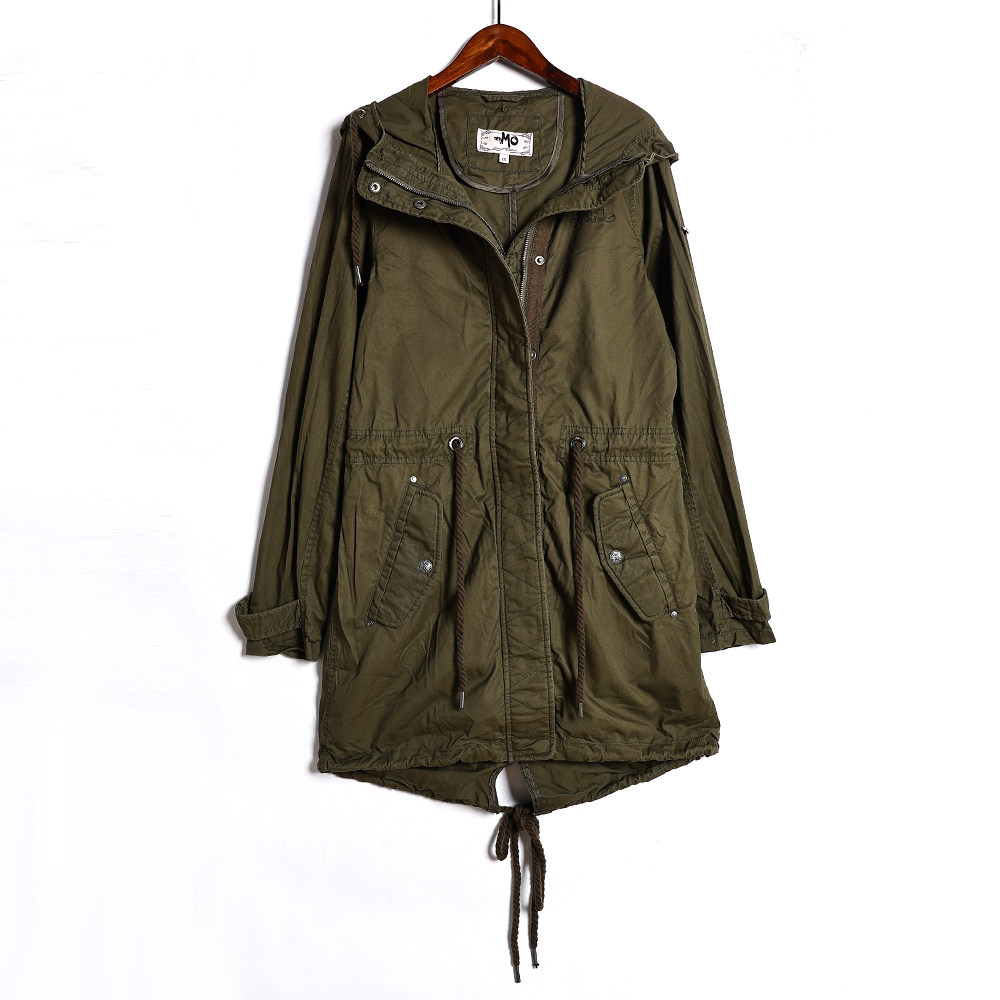 - 军绿风衣女 中长款