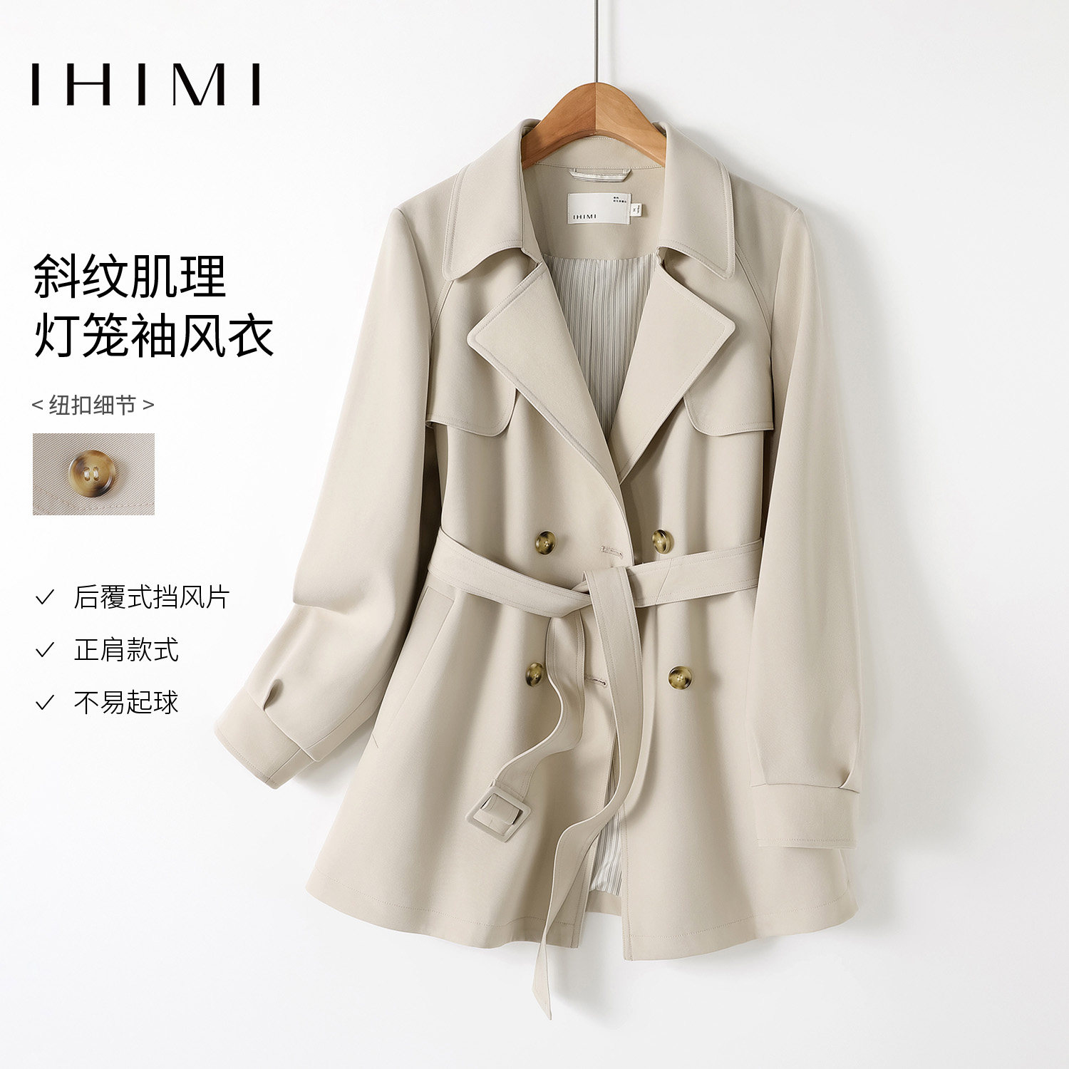 IHIMI/海谧2025年秋季新款女装气质小个子韩版百搭灯笼袖风衣外套