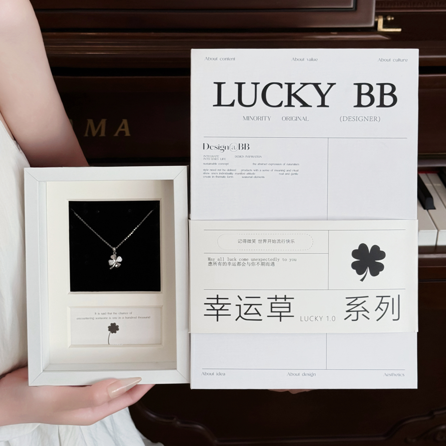 s925纯银项链女生日情人节礼物送女朋友轻奢小众锁骨链三叶草吊坠