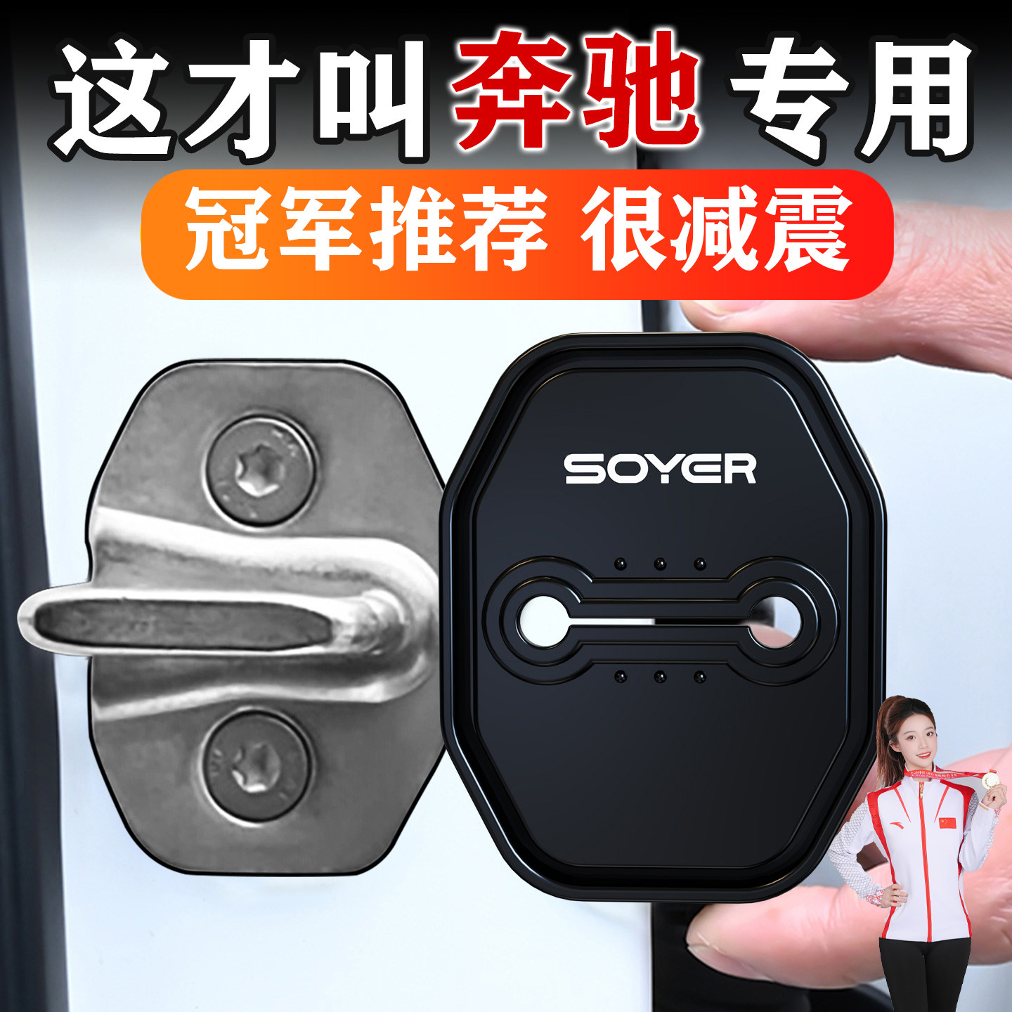 适用奔驰门锁扣盖E级C级A级EQA/GLC/GLB/E300L汽车门锁减震保护套