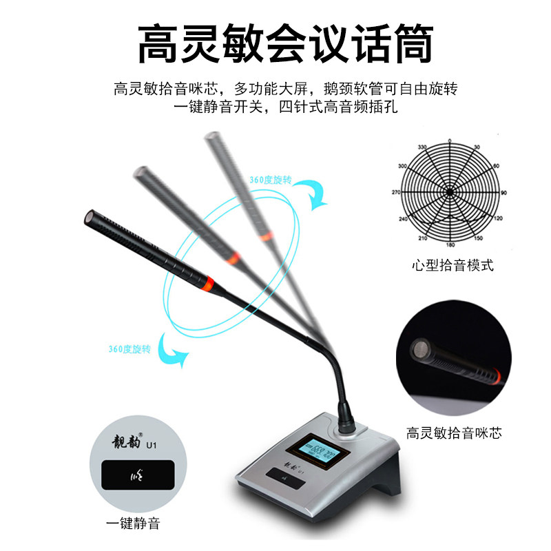 靓韵U1 一拖四无线会议麦克风话筒台式鹅颈专用舞台演出领夹麦