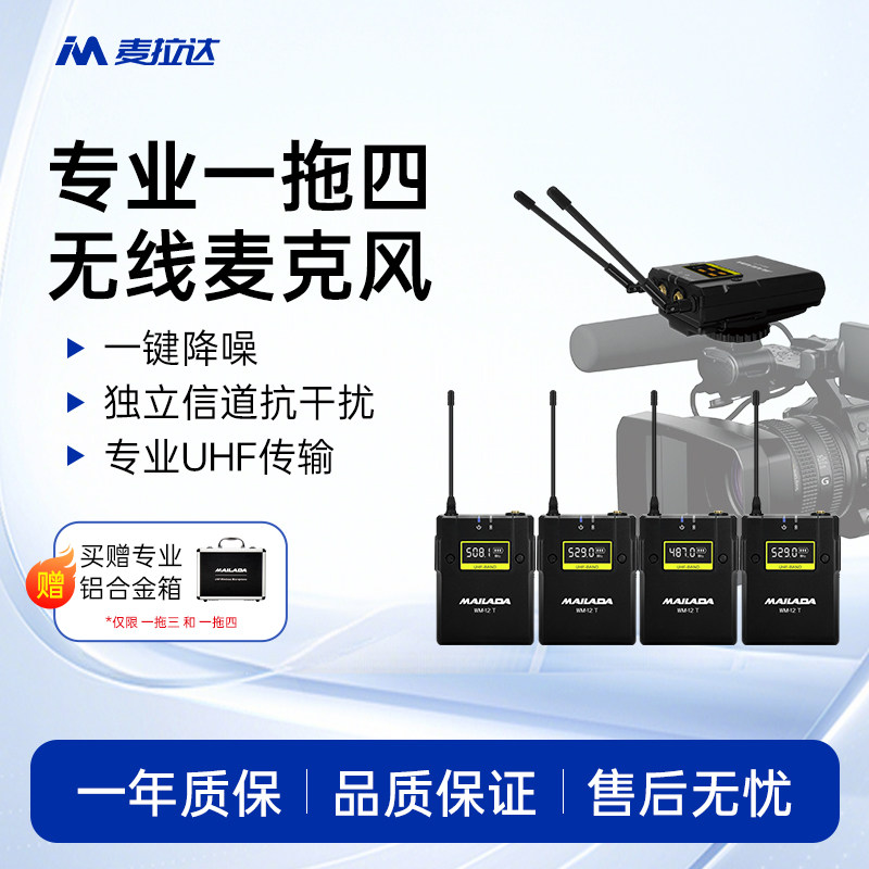 麦拉达WM12一拖四无线领夹麦克风话筒单反相机直播采访收音小蜜蜂