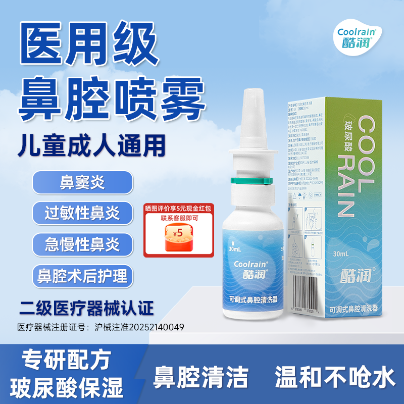 酷润玻尿酸鼻喷剂可调式鼻腔清洗器50mL冲鼻洗鼻器鼻窦炎成人鼻炎
