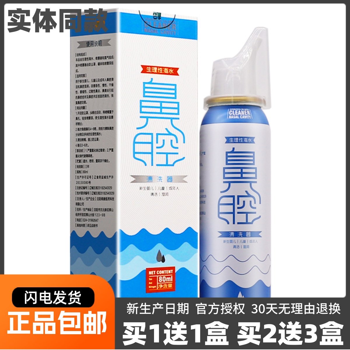 买1送1绿伞鼻腔清洗器生理性海水80ML儿童成人鼻腔清洁湿润液正品