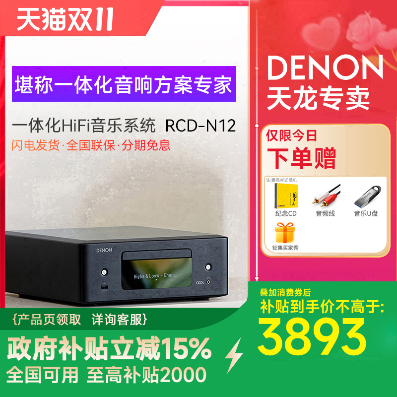 Denon/天龙RCD-N12台式组合音箱家影套装cd播放器书架碟机一体机