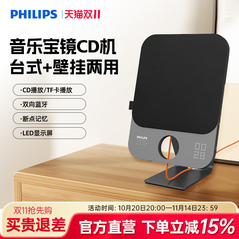 飞利浦TAM5008手机蓝牙播放器CD音响桌面台式家用桌面音箱DTM380