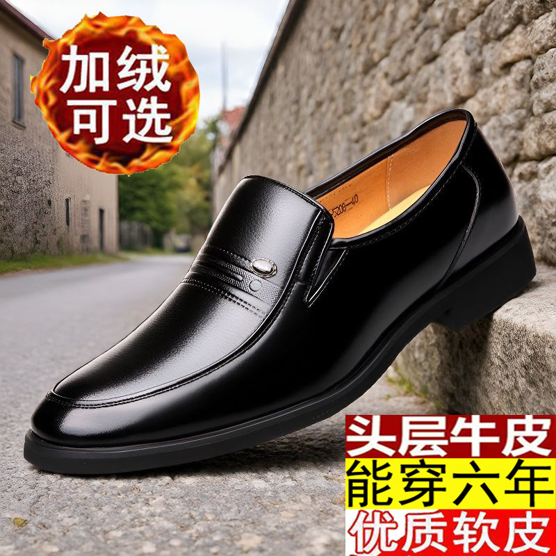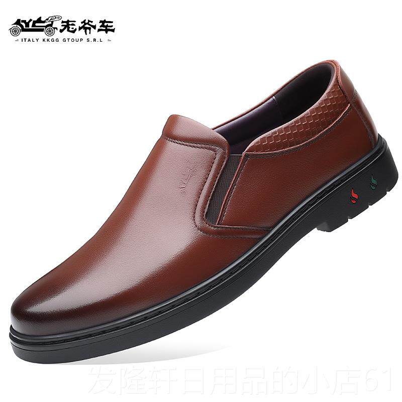 中年男子不系带皮鞋真皮头层牛皮商务休闲鞋圆头中老年透气爸爸鞋