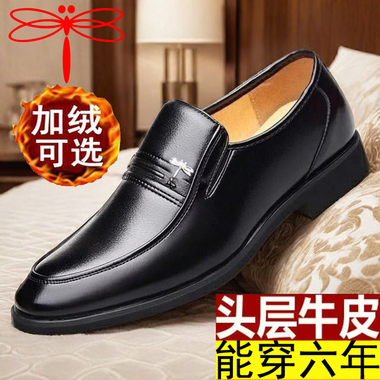 蜻蜓牌男士商务正装皮鞋真皮软底中老年爸爸鞋大码男鞋皮棉鞋男子