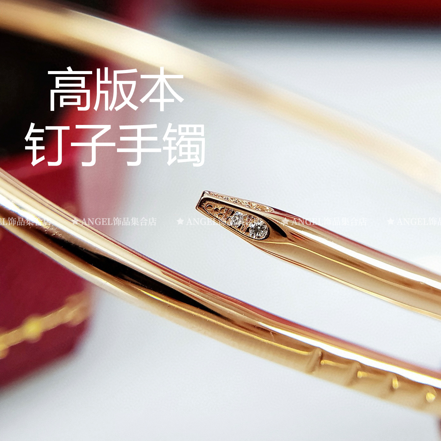 LOVE钉子手镯镀18K玫瑰金头尾钻情侣手环轻奢时尚V金光面经典设计
