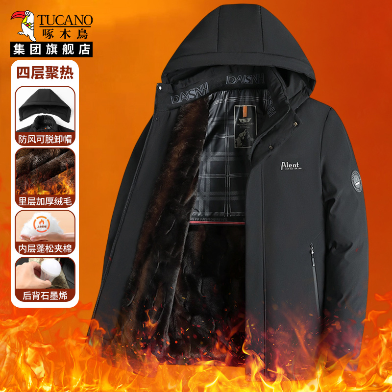 啄木鸟加绒加厚棉服男2025新款冬季中年爸爸防寒保暖棉袄防风外套